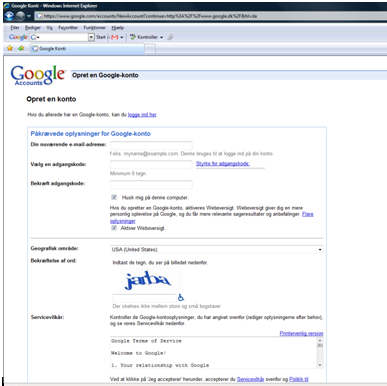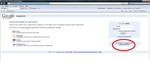 Åbn web-sitet https://www.google.com/accounts/Login?continue=http://www.google.dk/&hl=da og klik på "Har du ikke en Google-konto?